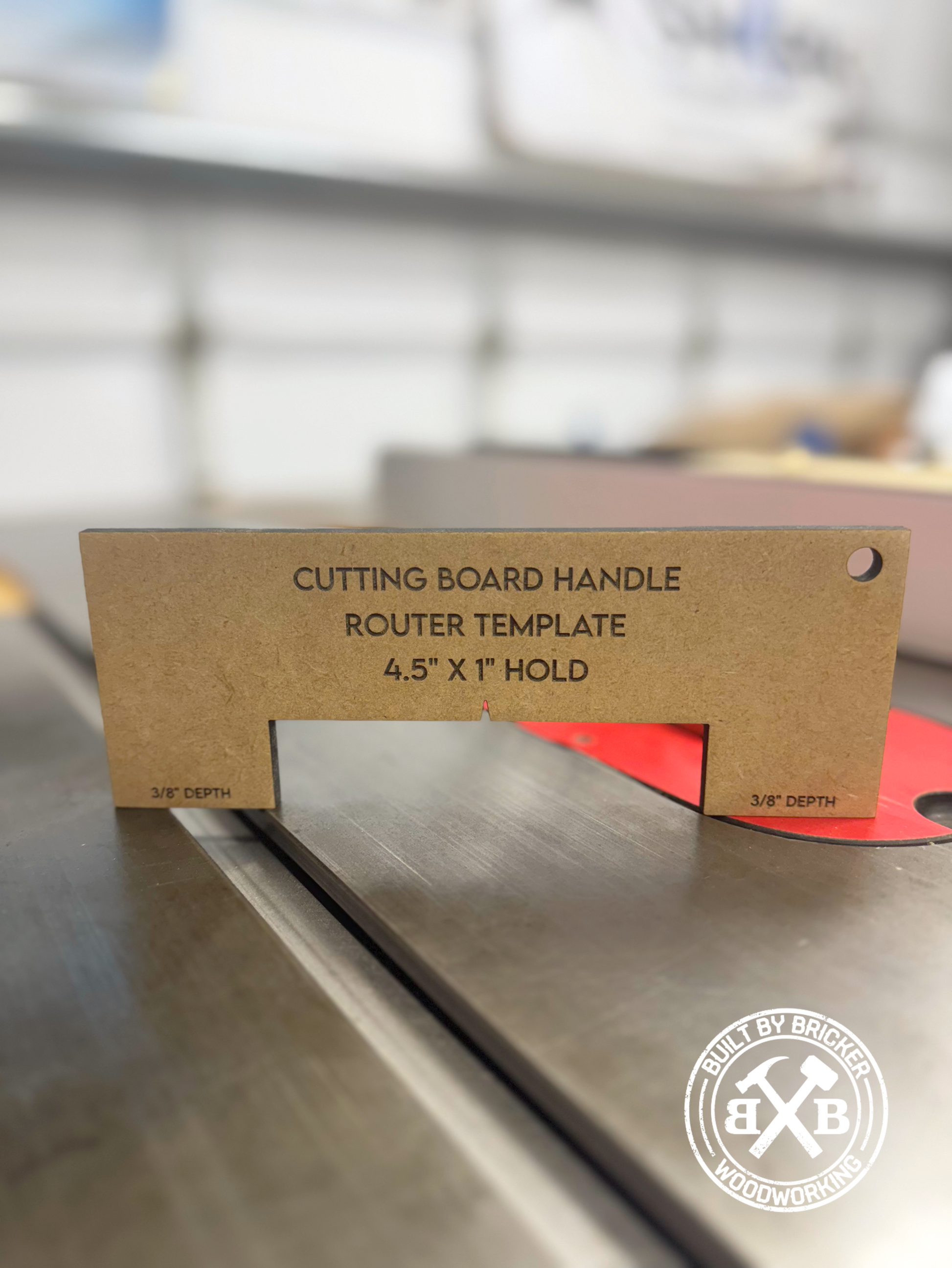 The result of the cutting board handle template will leave you with a 4" long by 1" wide hand hold, and I recommend going 3/8" in total depth for a nice grip. (see pictures)