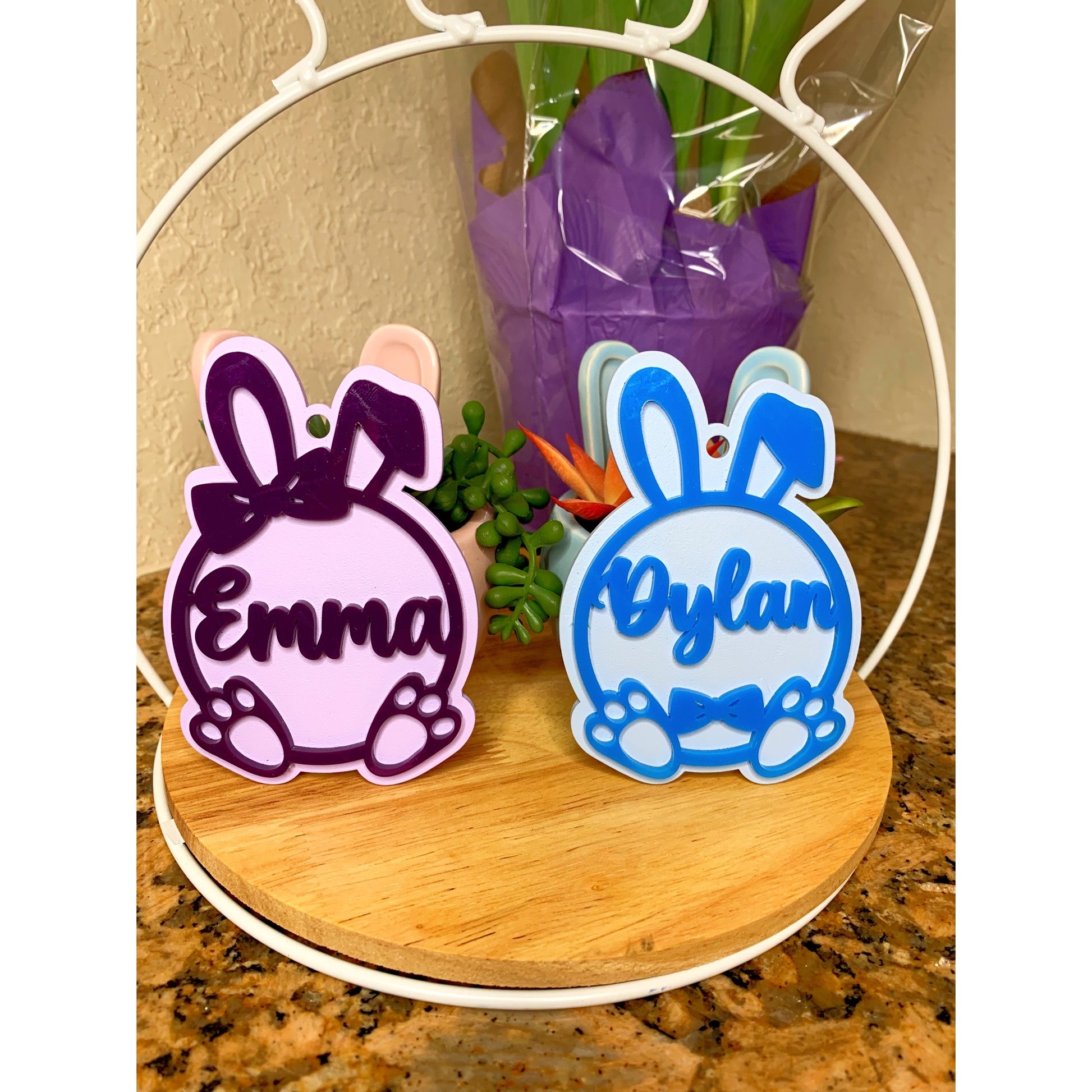 These make the perfect custom Easter basket tags! Each child will know right away which basket is for them, and as the years go by they will remember and head straight for theirs!