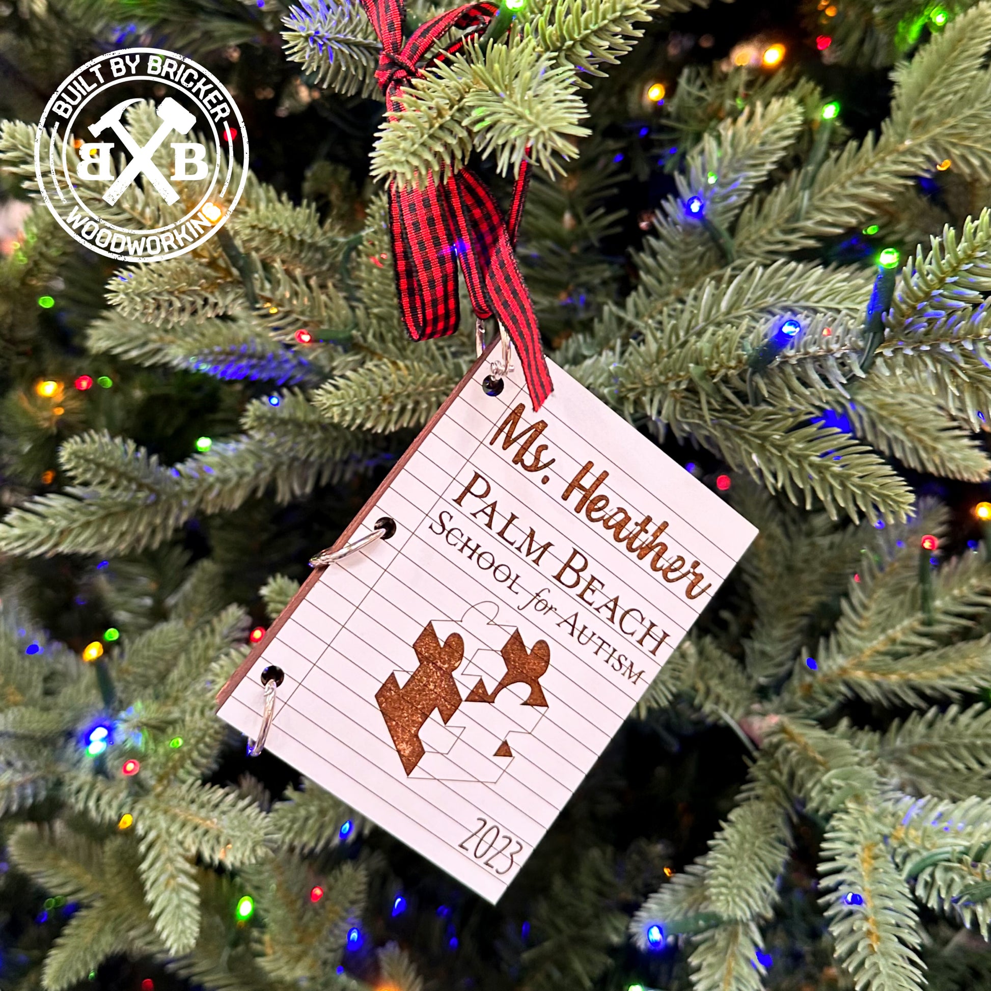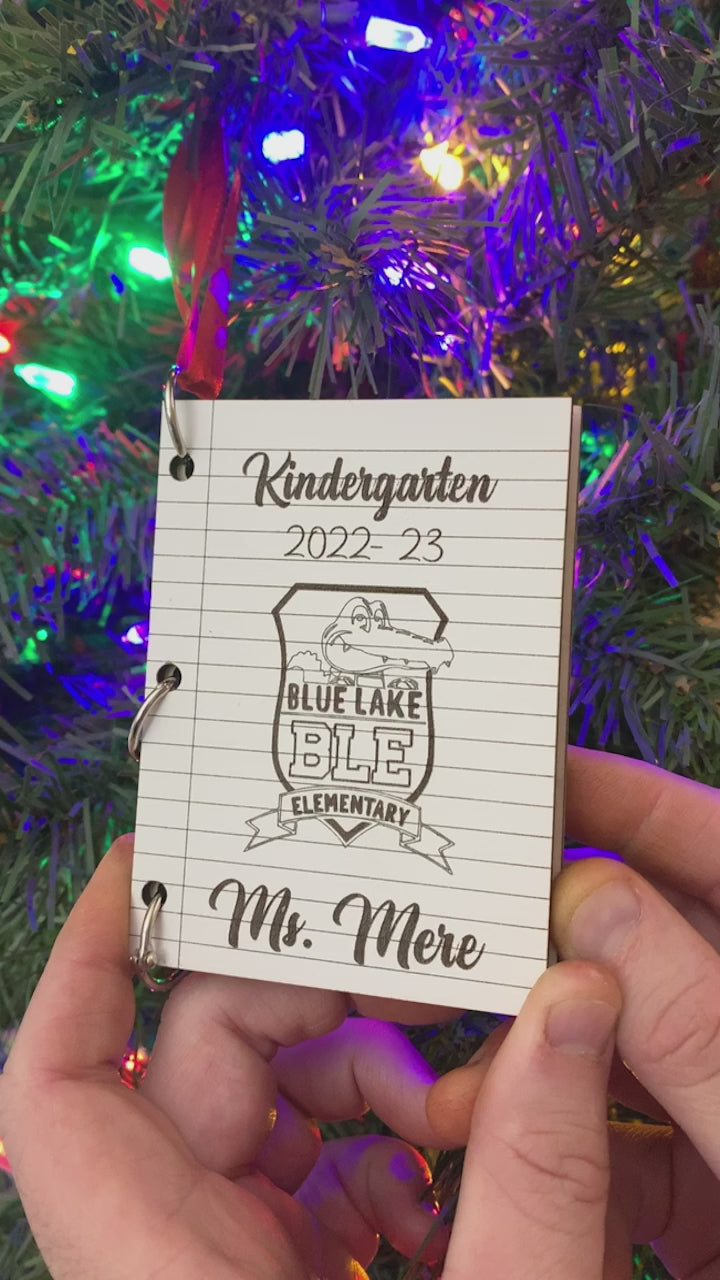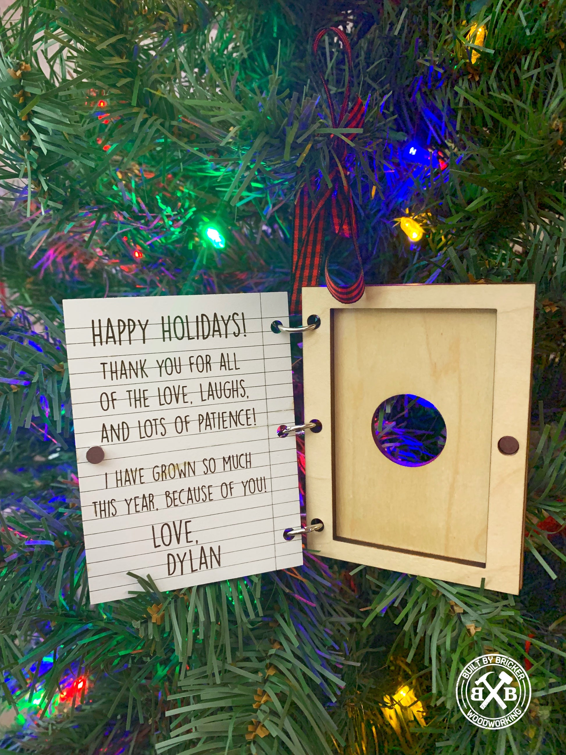 - These are made from whiteboard and maple plywood. There are 3 rings attached to hold the notebook together as well as a magnet to keep it all closed. The very back piece has a hole to poke your finger through to easily knock out the gift card. A piece of ribbon will be attached so it can be used as an ornament. The approximate size is 4" tall x 3" wide. The gift card slot will hold most generic sized gift cards.